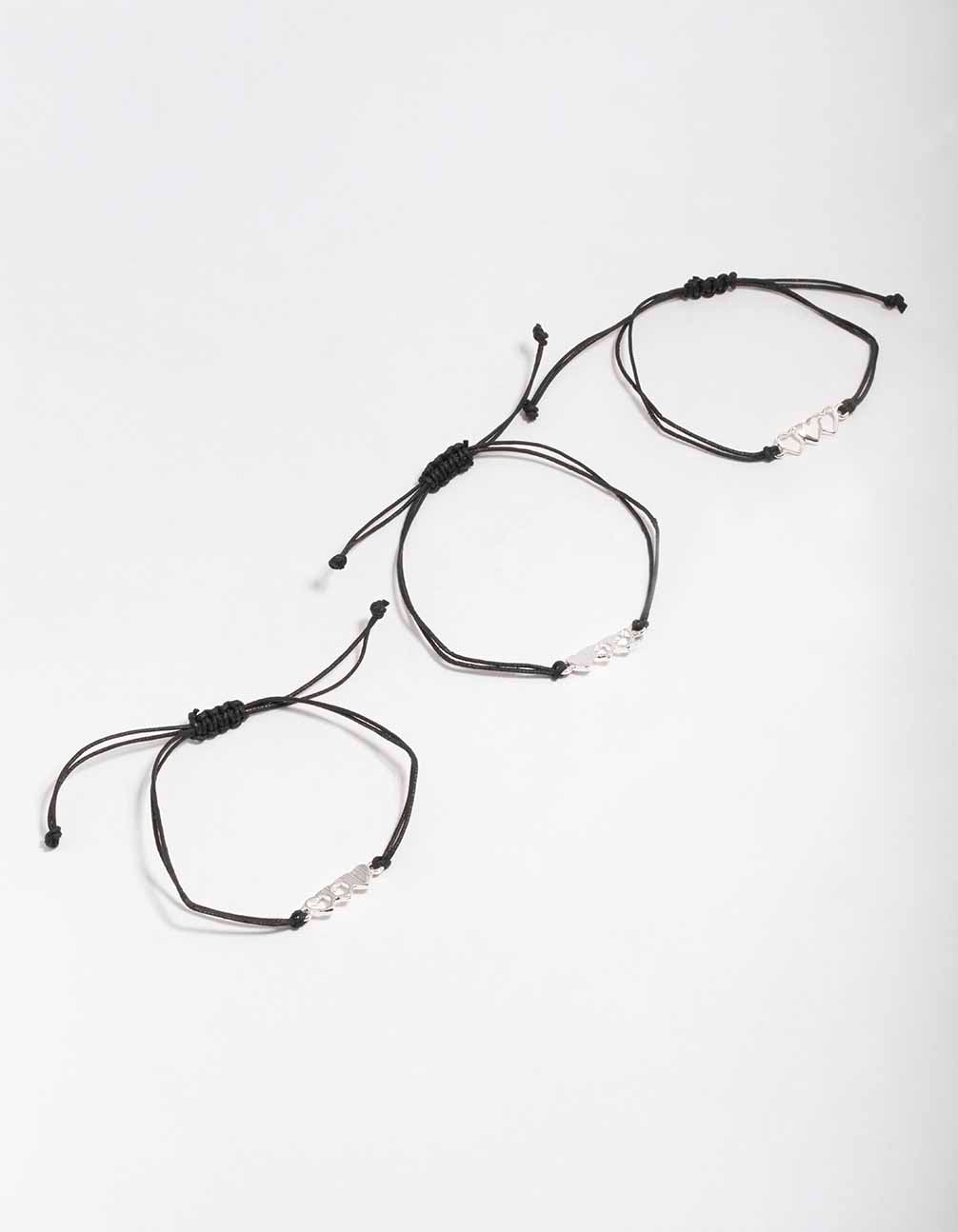 Black Cord Heart Bracelet 3-Pack